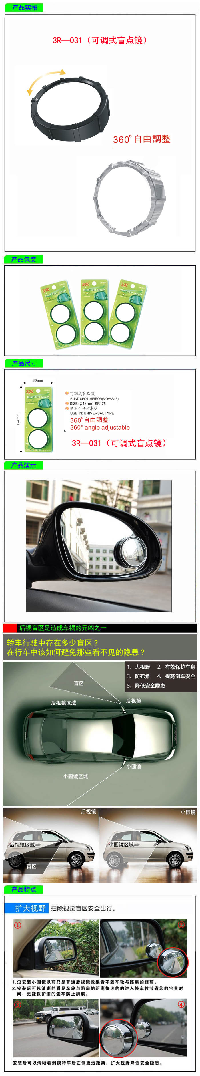 • 型號:   3R—031(可調式盲點鏡)