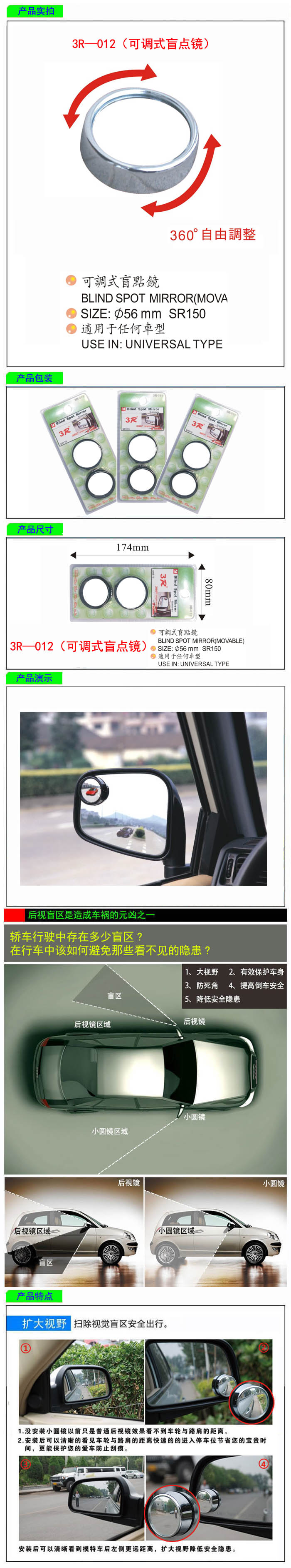• 型號:   3R—012(可調式盲點鏡)