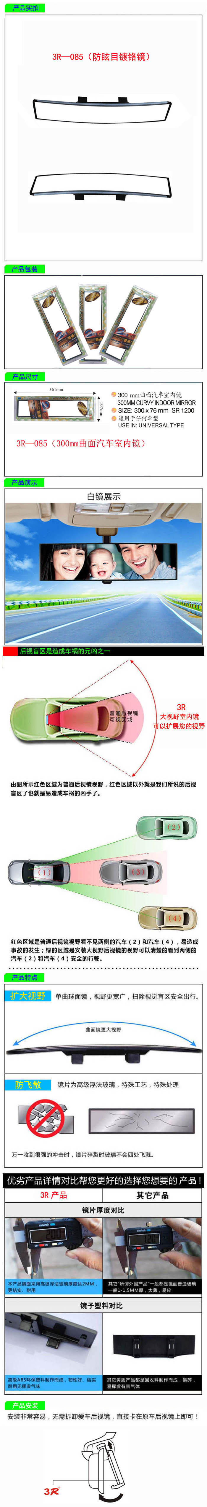 • 型號(hào):   3R—085(300mm曲面汽車室內(nèi)鏡)