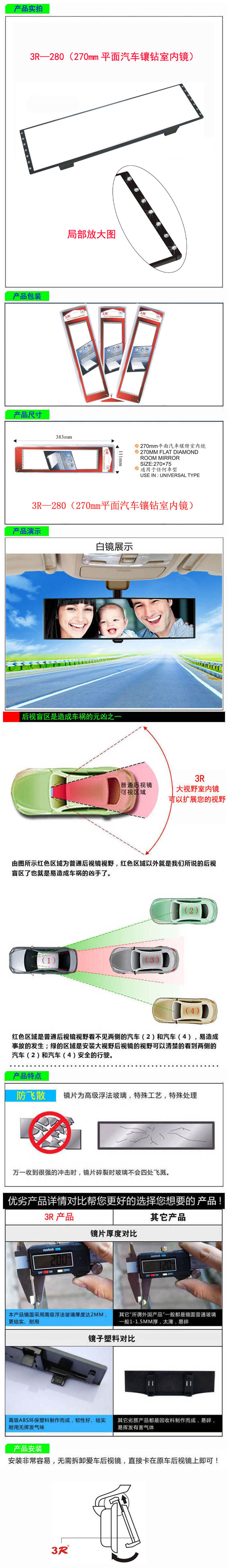 • 型號:   3R—280(270mm平面汽車鑲鉆室內鏡)