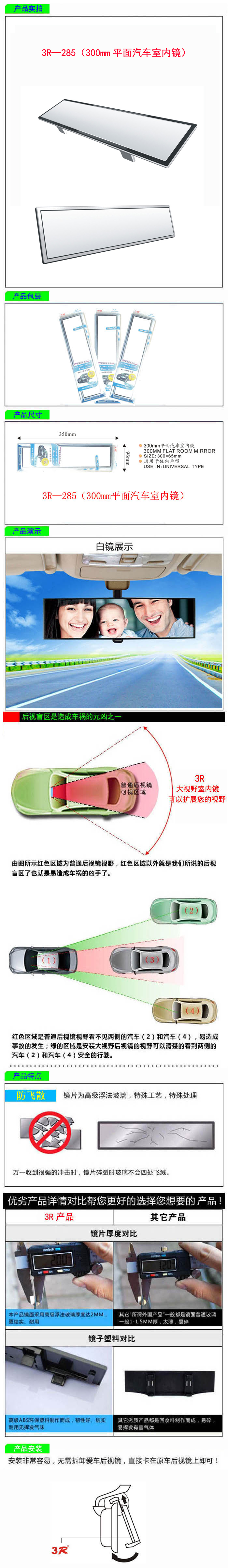• 型號:   3R—285(300mm平面汽車室內鏡)