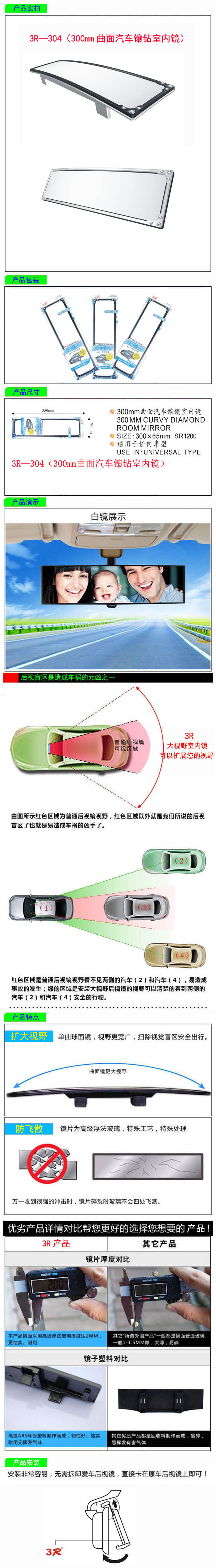 • 型號:   3R—304(300mm曲面汽車鑲鉆室內鏡)