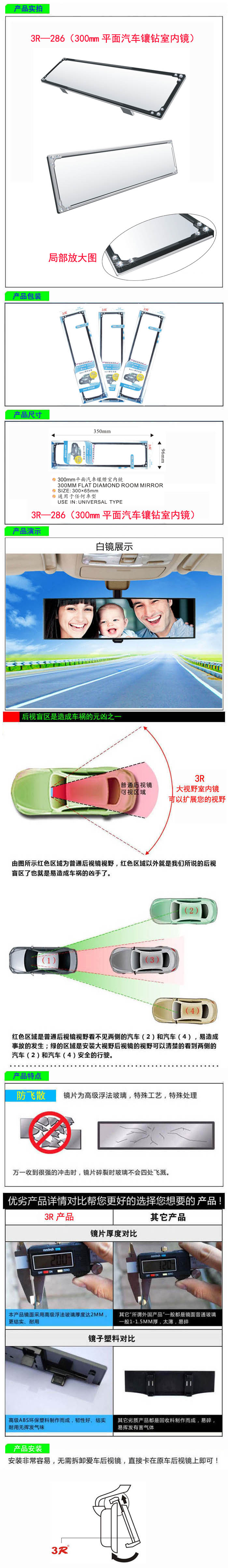• 型號:   3R—286(270mm曲面汽車室內鏡)
