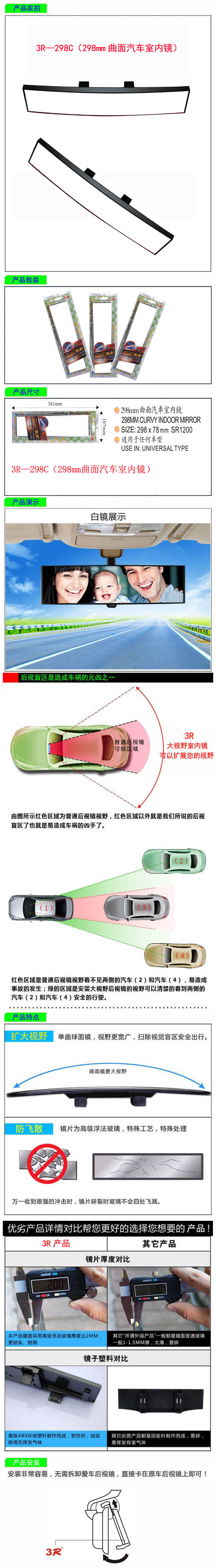 • 型號:   3R—298C(298mm曲面汽車室內鏡)