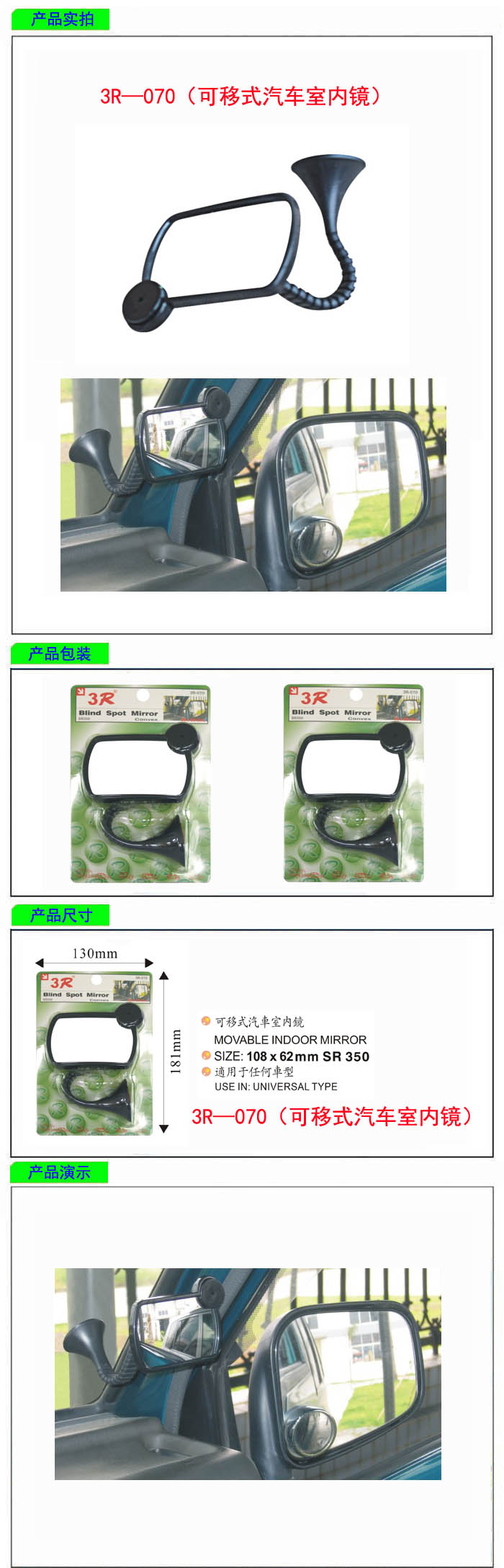 • 型號:   3R—070(可移式汽車室內(nèi)鏡)