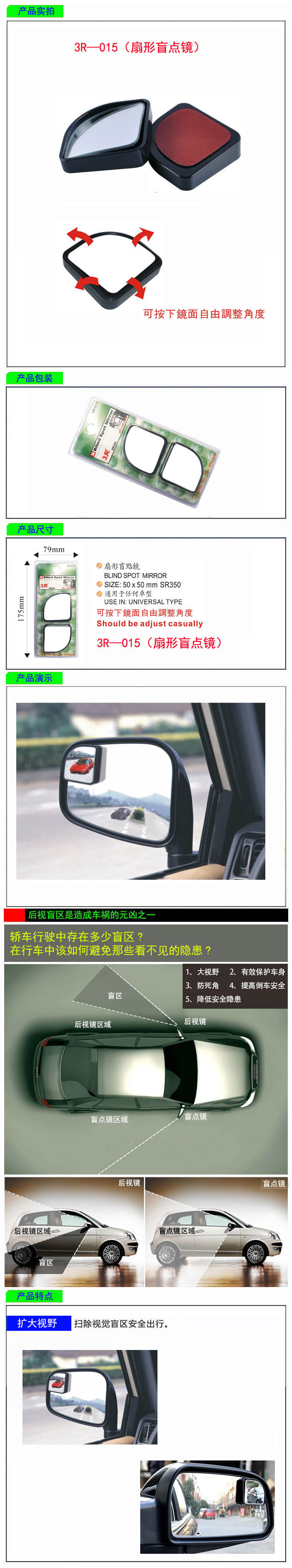 • 型號:   3R—015(扇形盲點鏡)