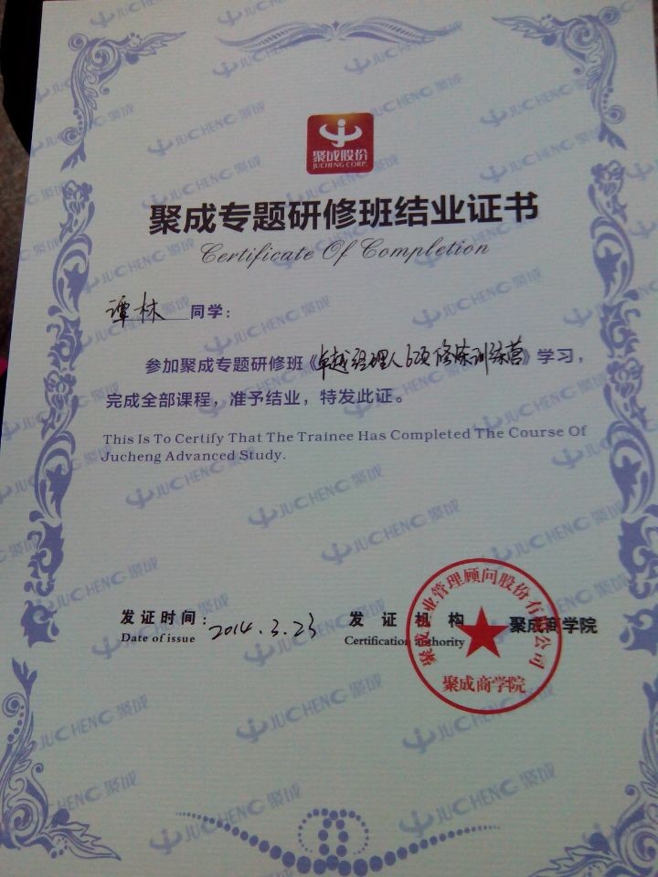 2014年3月22-23日,公司兩名管理人員前往佛山禪城區(qū)石灣賓館,參加聚成公司舉辦的〈卓越經(jīng)理人6項(xiàng)修煉訓(xùn)練營〉的培訓(xùn)課程。